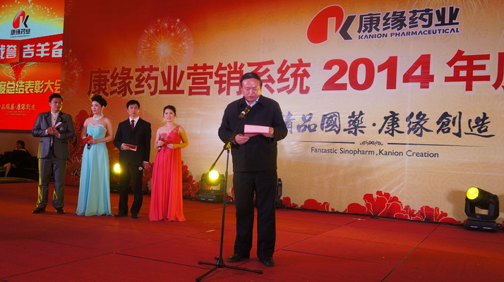 在会议进入第二篇章,表彰先进、庆功联欢阶段,副市长徐家保热情洋溢发表了祝酒词。他首先向我公司在2014年宏观经济形势趋紧,下行压力凸显的情况下,仍然保持了23%的增长幅度表示了祝贺,同时代表市委市政府提出了四点希望!一是希望我公司积极融入我市经济社会发展大潮,找准定位,再立新功,创造一个强大的新康缘。二是希望我公司坚持创新驱动的发展战略,进一步做强品种,做大规模,勇做我市新医药板块的排头兵,为我市经济社会发展做出更大贡献。三是希望我公司一如既往地强化依法治企理念,成为全市依法经营的典范企业。四是希望我公司一如既往地关注我市社会事业发展,勇担社会责任,在解决劳动就业、扶贫事业、慈善事业、关注弱势群体、扶危济困等方面发挥更大作用。市领导的关心、鼓励与厚望让每位员工心头都要洋溢激情和涌动拼搏着动力!